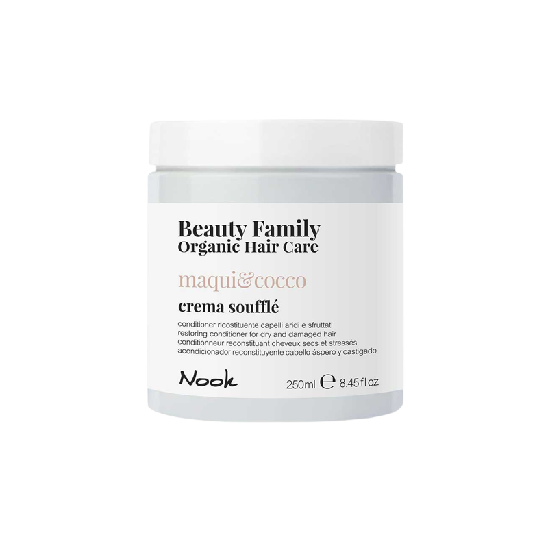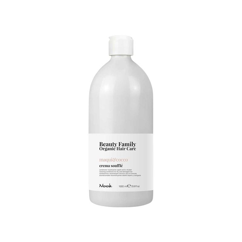Con la nueva Acondicionador reparador de Nook Beauty Family Organic Hair Care tendras todo lo necesario para tener el cabello mas sano en poco tiempo. Su formula activa con Extractos naturales de maqui y de coco, potencia la reparacion y la reconstitucion del cabello desde la base de la fibra capilar. El maqui con mayor cantidad de antioxidantes, no solo protegen la fibra capilar, sino que estimulan su regeneración del mismo este fruto, además, contiene pigmentos anticiánicos, perfectos para proteger el cabello con coloración. El ácido láurico que contiene el aceite de coco protegerá el cabello de las agresiones externas y fortalecerá el cuero cabelludo, ademas intensificará los efectos reparadores de coco
