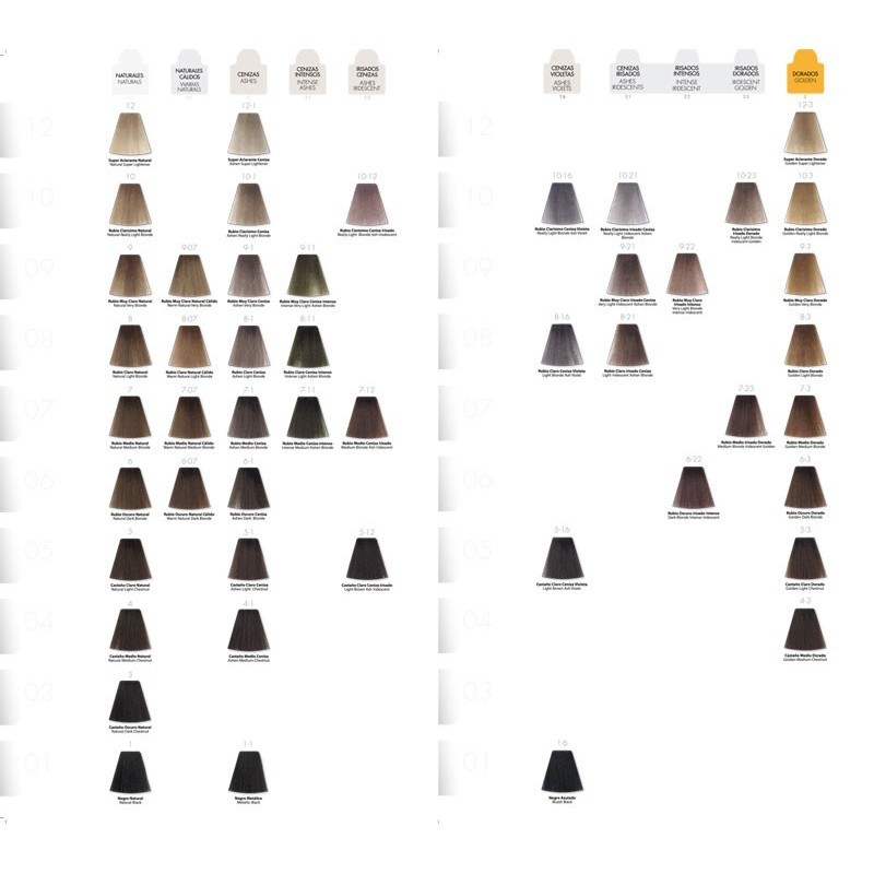 Carta de color del Tinte de Nirvel, incorpora los series de Artx, Blond U, Fuego, y Nature. Consigue todos los colores de Nirvel Profesional.